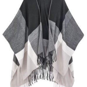 LASCANA XXL Schal, Poncho mit Fransen, in Schwarz-Grau-Weiß, Größe One Size