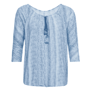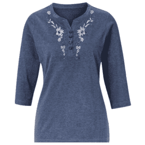 Damen Shirt in Melange-Optik mit Blütenstickerei , 3/4 Arm, in Jeansblau, Gr. 48