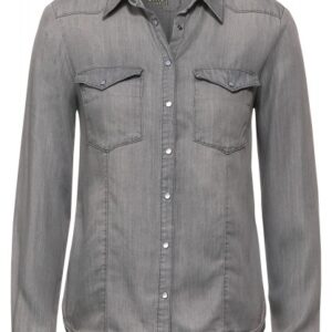 CECIL - Hemdbluse in Light Grey Used Wash, Größe XL