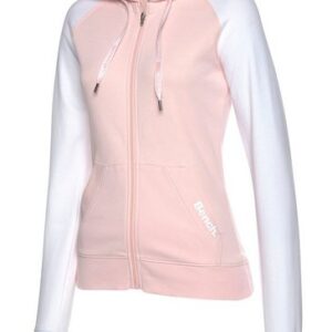 Bench. Kapuzensweatjacke mit farblich abgesetzten Ärmeln, in Rosa-Weiß, Größe 40/42