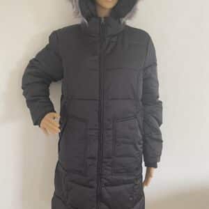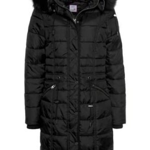 AJC Steppmantel mit fellbesetzter Kapuze, in Schwarz, Gr. 38