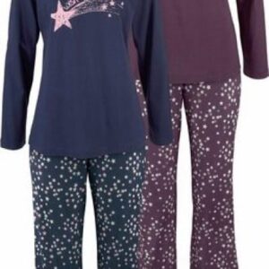 Vivance Dreams Pyjama Doppelpack mit Sternenprint, in Bordeaux und Marine, Größe 48/50