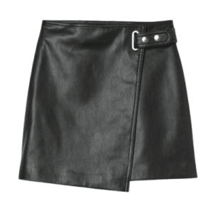 Wickelrock aus Lederimitat, Minirock, Mit Schnalle, Gefüttert, Schwarz, Größe 32