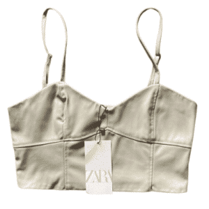 Bustier aus Lederimitat mit verstellbaren Trägern, in Beige, Größe M