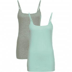 Tank Tops mit Spaghettiträgern, 2er-Pack, aquapastell/hellgrau meliert, Gr.44/46