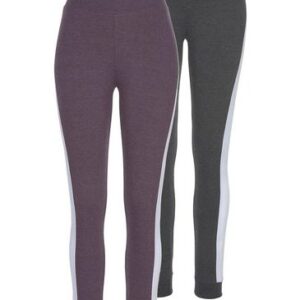Arizona Leggings im 2er-Pack mit Seitenstreifen, in Anthrazit-meliert, Pflaume, Größe 40/42