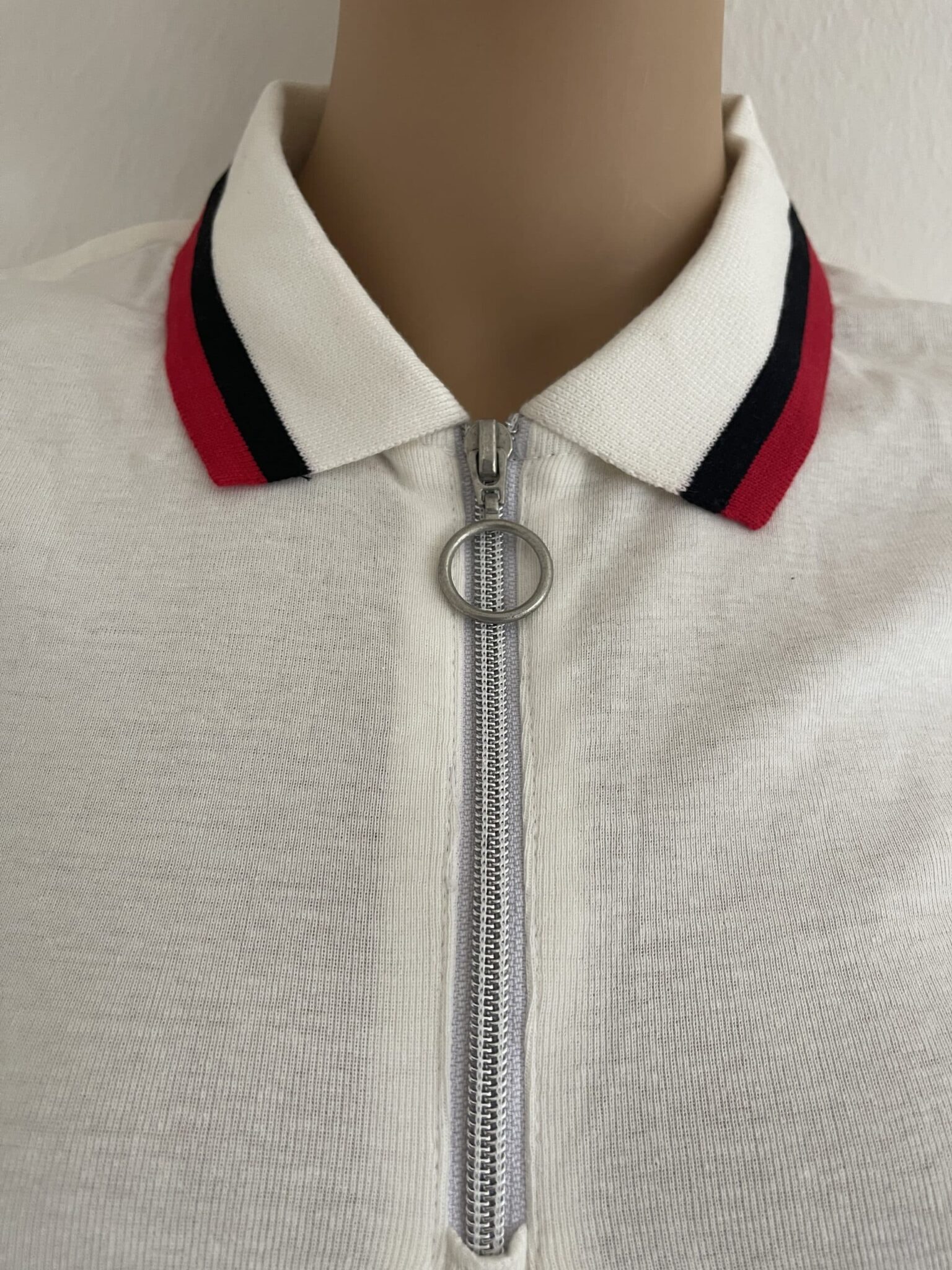 Dieses Shirt hat einen Polokragen, einen Kipper und ist leicht tailliert geschnitten.