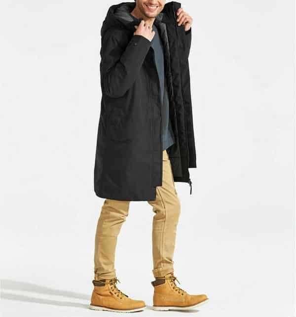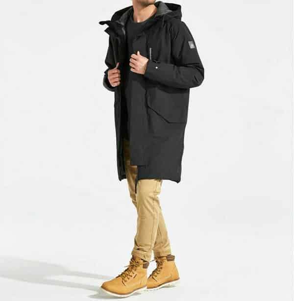 Kenny, a thin, lined men's parka in a longer model with a clean design and two discreet front pockets. The parka is waterproof and windproof with taped seams, perfect for colder fall days.