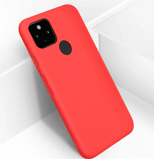 Semi-rigid silicone phone case for Google Pixel 5, protective case with soft-touch design - Red + 2 Panzerglass