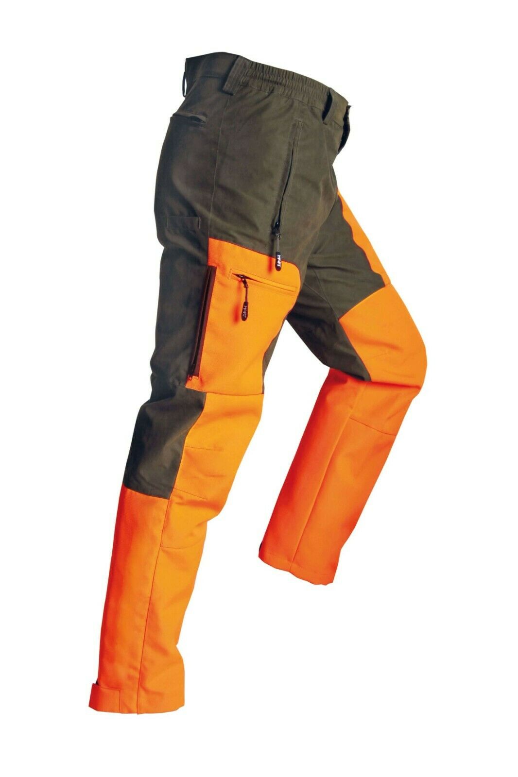 Die Hart IRON TECH-T Sicherheitshose ist eine wasserdichte Hose, die mit dornensicheren Besätzen versehen ist und sich daher ideal für die Nachsuche bei der Jagd eignet. Dabei weist die Iron Tech Hose eine extrem hohe Wasserdichtigkeit von 80000 mm auf. Die Dornenschutzhose von Hart ist in zwei verschiedene Farben erhältlich. In Orange Blaze bietet die Hose einen dreilagigen Schutz, der mit robusten Rip Stop Blaze samt einer inneren verstärkten Lage sowie einem äußeren Hauptgewebe versehen ist.