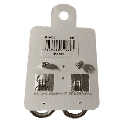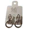 Trendy costume jewelry earrings. Different sized rings are attached to the silver-colored stud earrings.