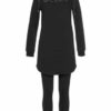 Consisting of an extra-long hooded sweatshirt and leggings in single jersey fabric, this comfy duo is a real eye-catcher.