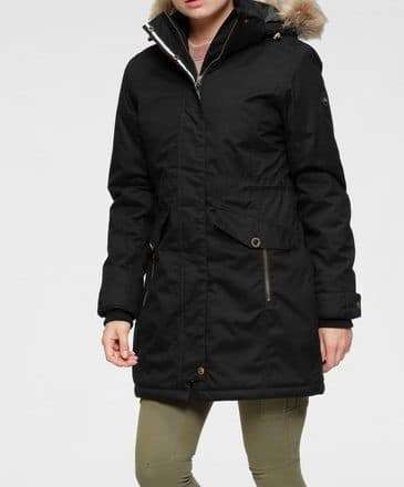Dank des hohen Stehkragens mit Kapuze inklusive abnehmbarem Kunstfell wird dein Hals optimal gewärmt.