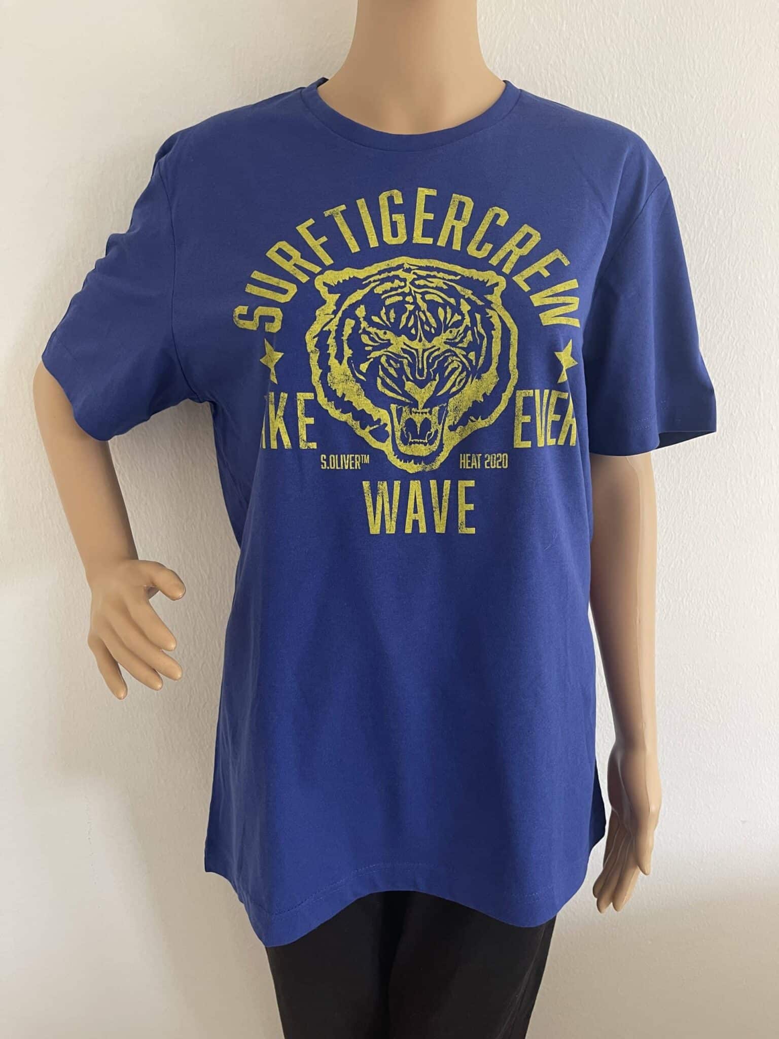 This T-shirt from s.Oliver stands out with its large themed print and impresses with its easy-care cotton fabric, round neckline, loose fit, regular length and short sleeves.