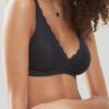 The Sloggi bralette bra is made from stretchy, velvety soft lace that hugs the breasts like a feather.