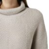 Er kommt mit Rollkragen, überschnittenen Schultern und gerippten Abschlüssen.