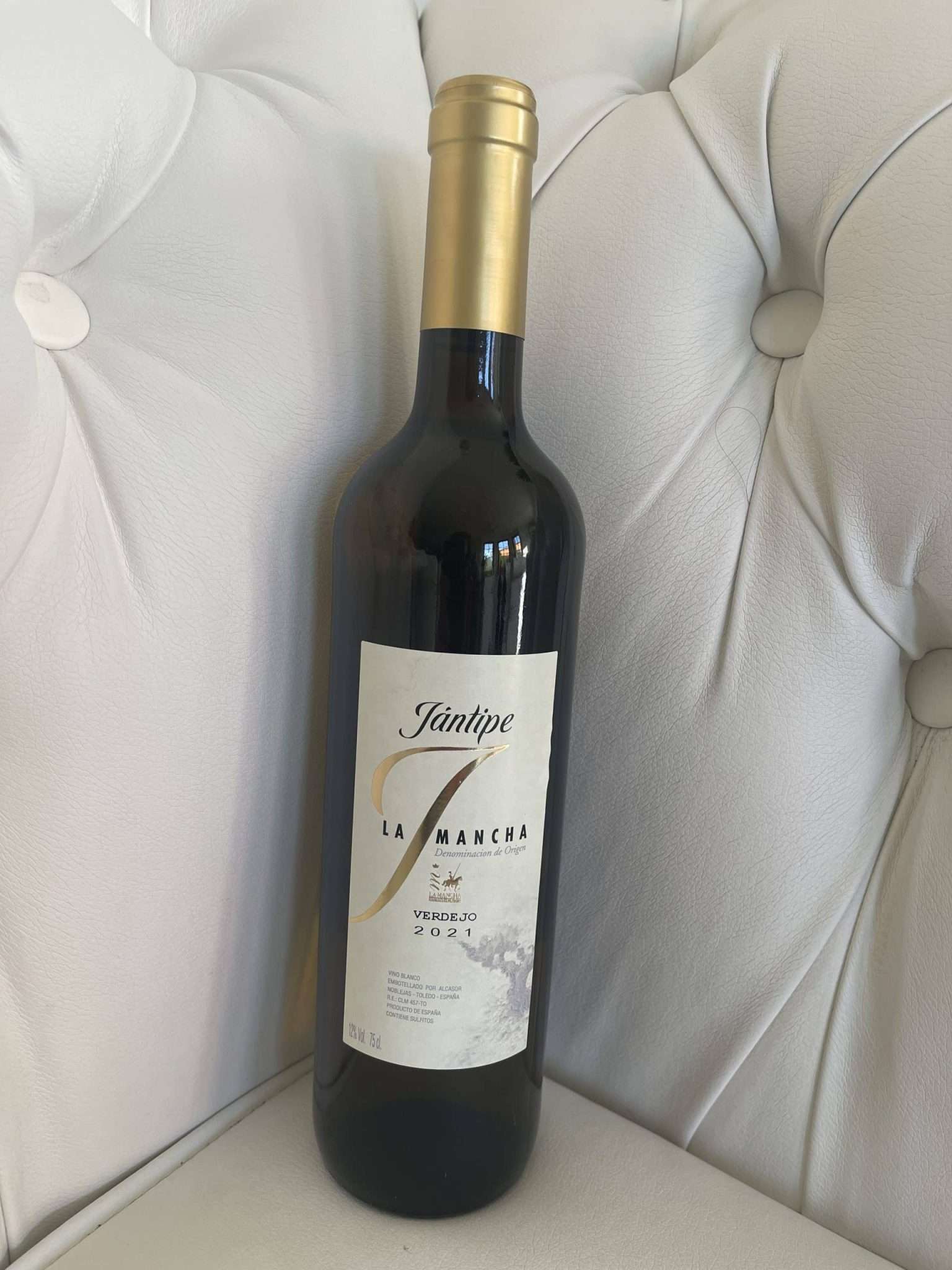 Jántipe Verdejo ist ein goldgelber Wein, man sieht die für diese Sorte typischen krautigen Grüntöne.