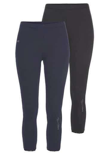 In angesagter 3/4-Länge mit einer filigranen Spitzenkante am Beinabschluss präsentieren sich diese bequemen Leggings von KangaROOS und das sogar noch im Doppelpack.