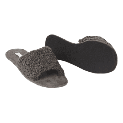 Mules de suave piel de cordero sintética con tira ancha para el pie.