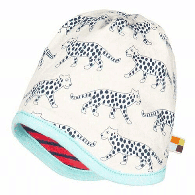 Wendemütze, Gepard, blau/rot gestreift