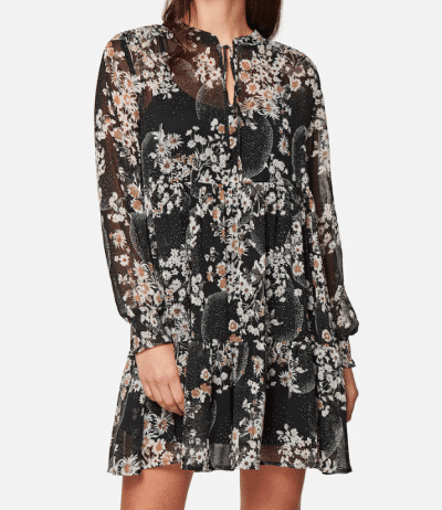 Das Blumenmuster verleiht dem süßen Kleid eine verspielte Note.