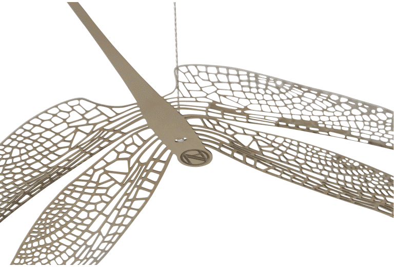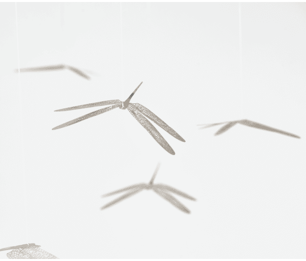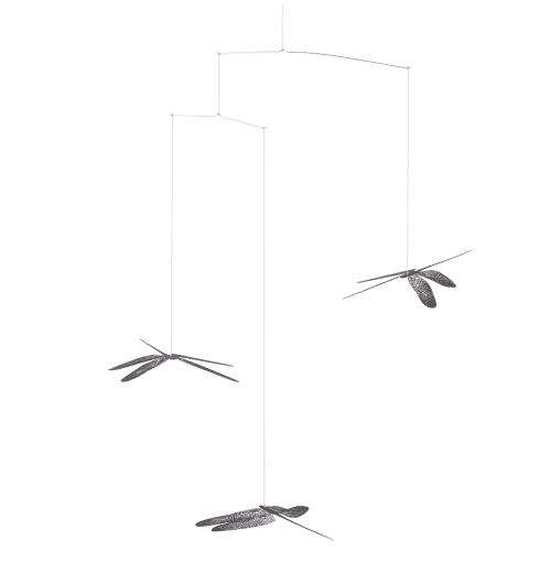 Kunstvolle Libellen erheben sich in raffinierten Designer-Mobile in einem Strudel beruhigender Bewegung in den Himmel