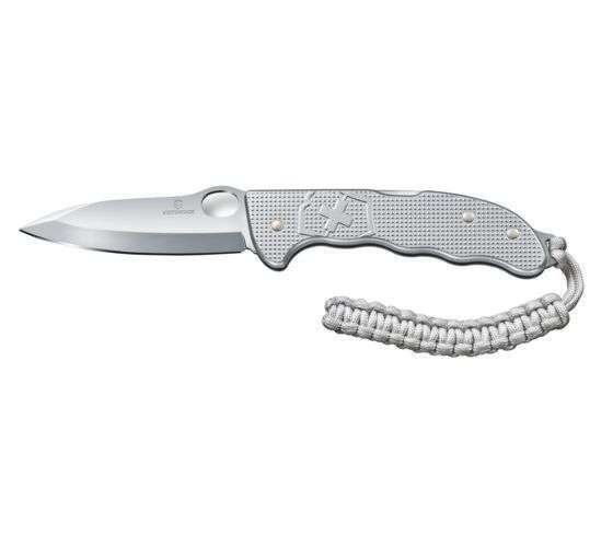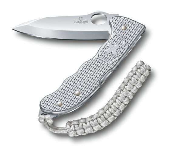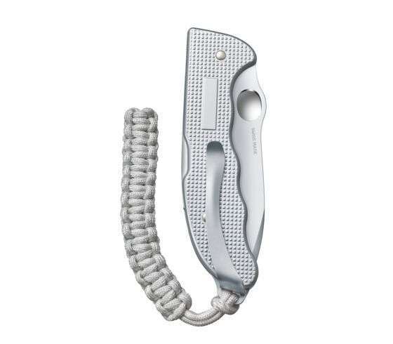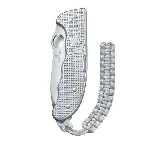 Nuestra última Hunter Pro combina un espíritu de descubrimiento y aventura con un diseño elegante y un aspecto sofisticado. Está equipada con las cachas acanaladas Alox de nuestra colección Pioneer, que confieren a la navaja un acabado más adherente y multidimensional. El clip curvado se integra perfectamente detrás de las escamas y se sujeta a prácticamente cualquier prenda de vestir. El orificio para cordón integrado con resorte y el colgante de paracord plateado anudado aportan una dosis extra de robusta sofisticación.