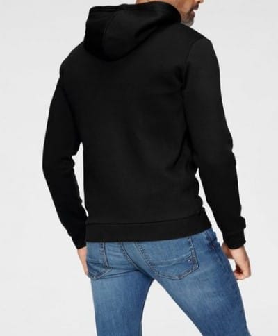 Die Ärmel enden, genauso wie der Saumabschluss, in einem Bündchen, die weich gefütterte Kapuze kannst du mit einem Kordelzug in der Weite verstellen.