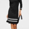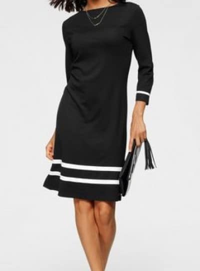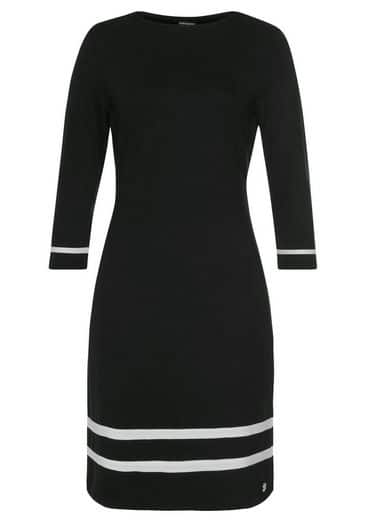 Das Designerdress mit der sportlichen Note aufgrund der applizierten Kontraststreifen und der modischen 3/4 Ärmel.