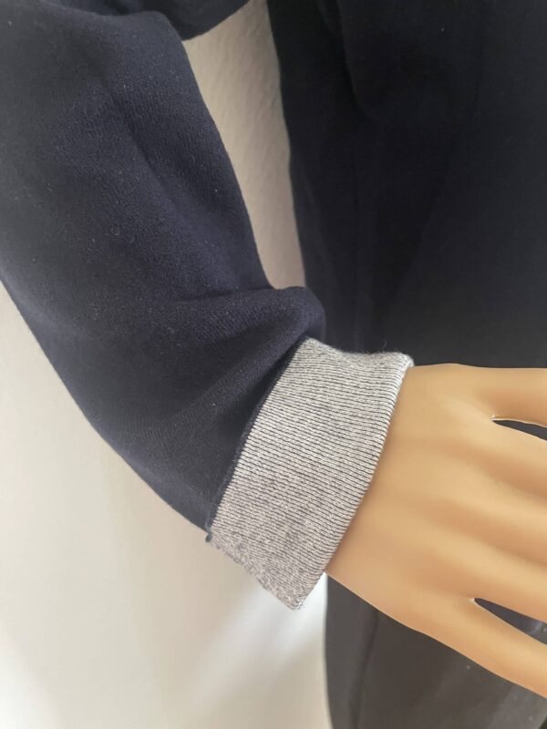 Er zeigt sich mit Stehkragen und einer interessanten Ärmelabschluss-Lösung