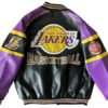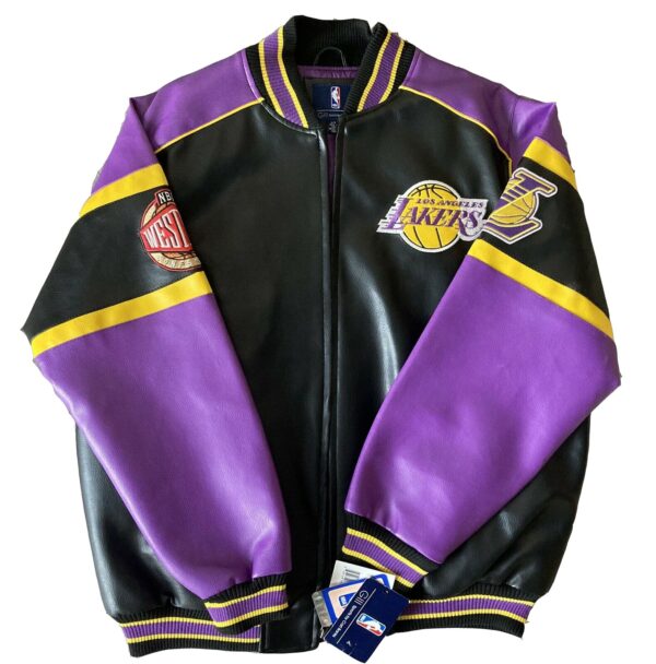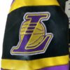 - Cette veste porte le logo "Los Angeles Lakers" sur le devant gauche et dans le dos, ainsi que d'autres logos sur les bras droit et gauche.