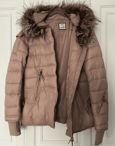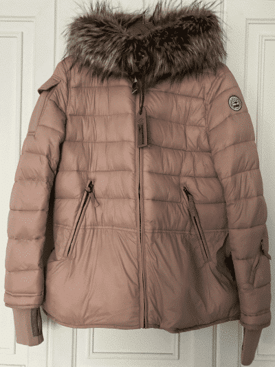 Die Kapuze hat ein Fellimitat, das sich auch entfernen lässt.