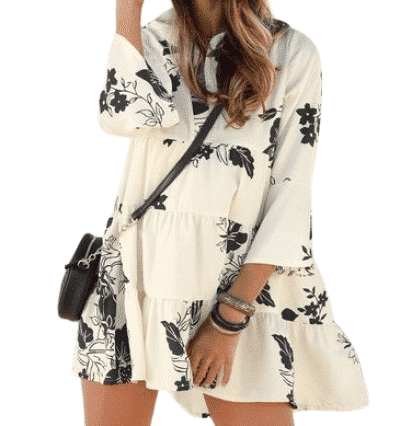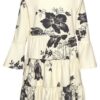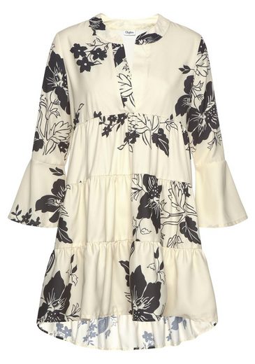 Dank der Ärmel mit Volantabschluss und des tiefen V-Ausschnitts wirkt die Freizeitbluse sehr feminin. Ein schönes Allovermuster macht auch die Rückseite zu einem Blickfang. Das Rockteil der Damenbluse ist in leichter A-Linie gearbeitet und umspielt angenehm die Figur.