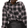 Legere Flanellbluse für Damen in Hellrosa/Schwarz kariert, Größe L, XL