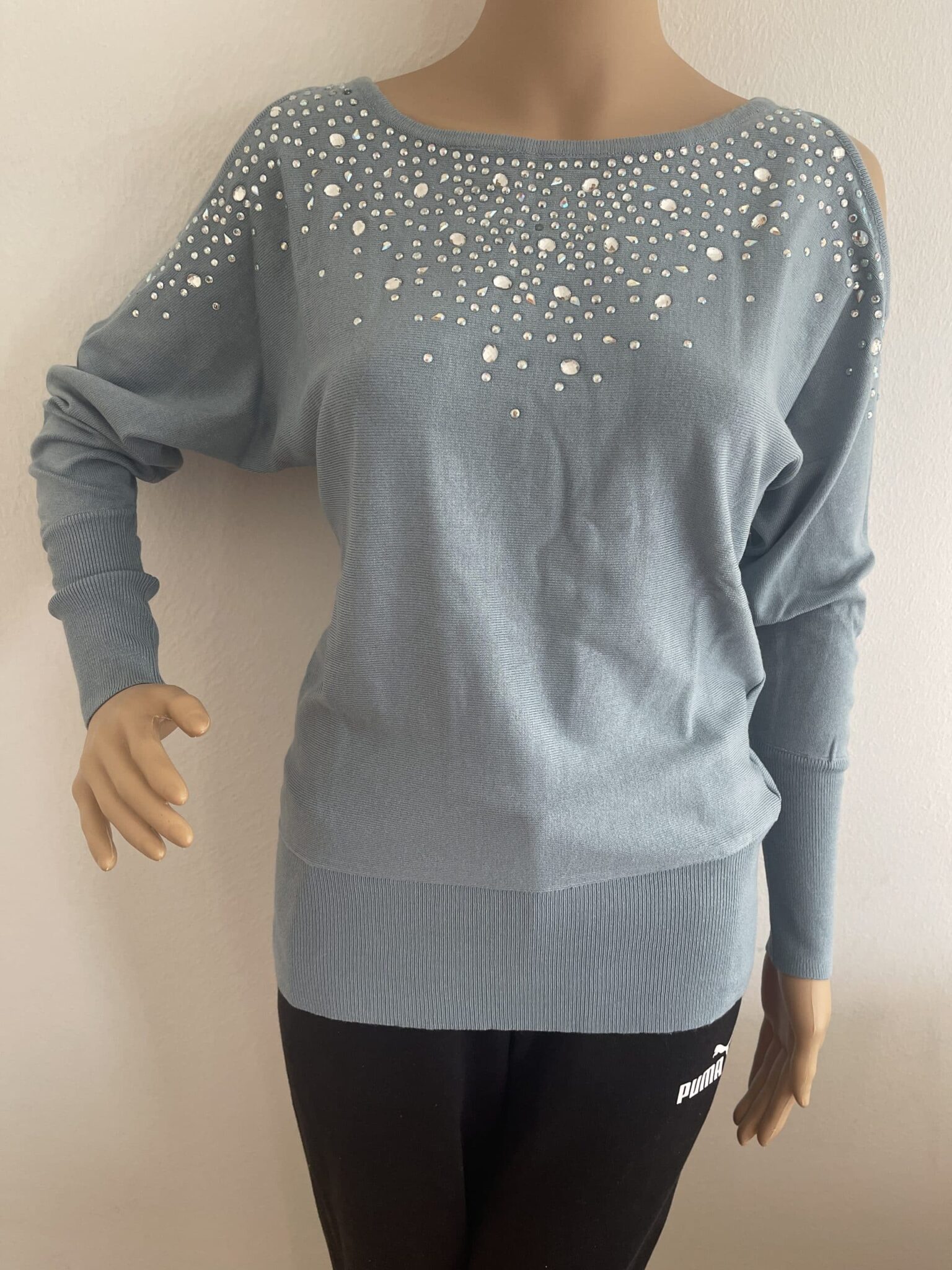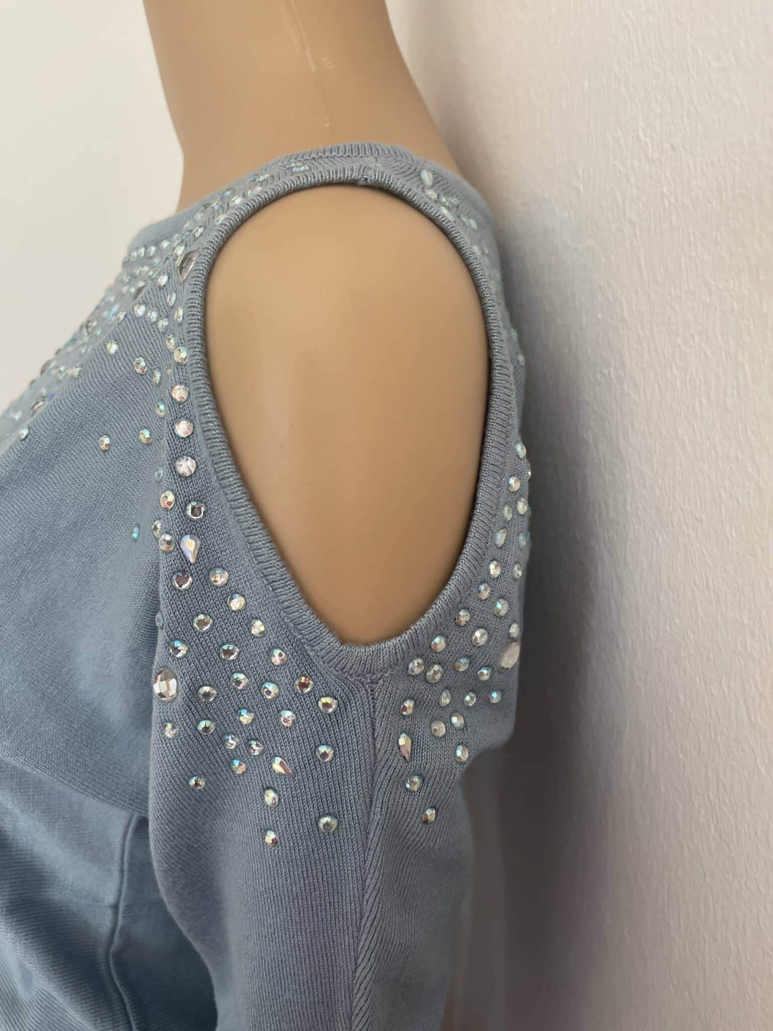 Schicker Damen-Rundhalspullover der Marke Melrose mit schimmernden Highlights durch Glitzer-Details. Mit einem hüftlangen und sehr figurbetonten Schnitt. Die Raglanärmel sind lang. Er ist mit elegant glänzenden Glitzersteinen versehen und Cut-Outs an den Ärmeln.