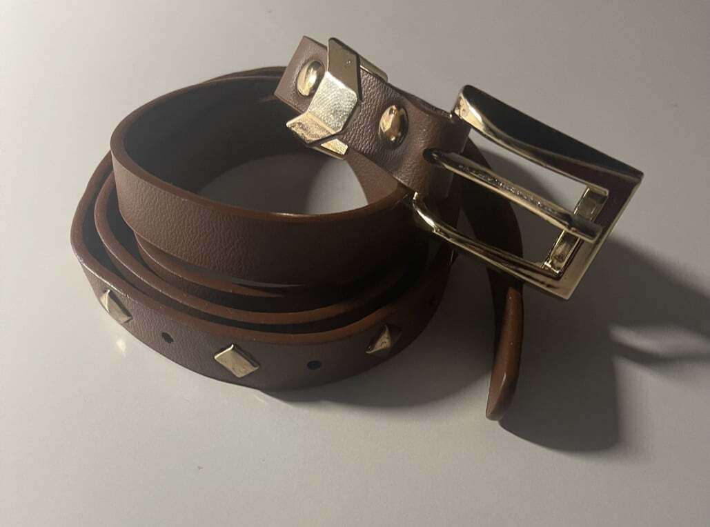 Mit goldfarbigen Nieten , Dornschnalle und Schlaufe