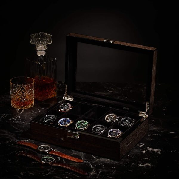 Vous avez aussi chez vous des montres que vous portez à peine ? Alors notre luxueuse boîte à montres est exactement ce qu'il vous faut ! Commandez dès maintenant notre boîte à montres pour stocker vos pièces proprement et en toute sécurité.