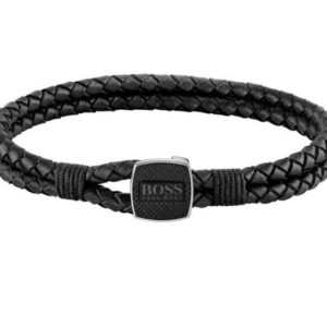 HUGO BOSS Herren Armband in schwarz "Seal", Stahl/Leder