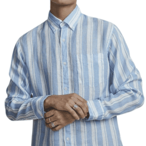 NN07 - Levon Hemd 5220 Leinen, Blau/Weiß Gestreift, Größe XL