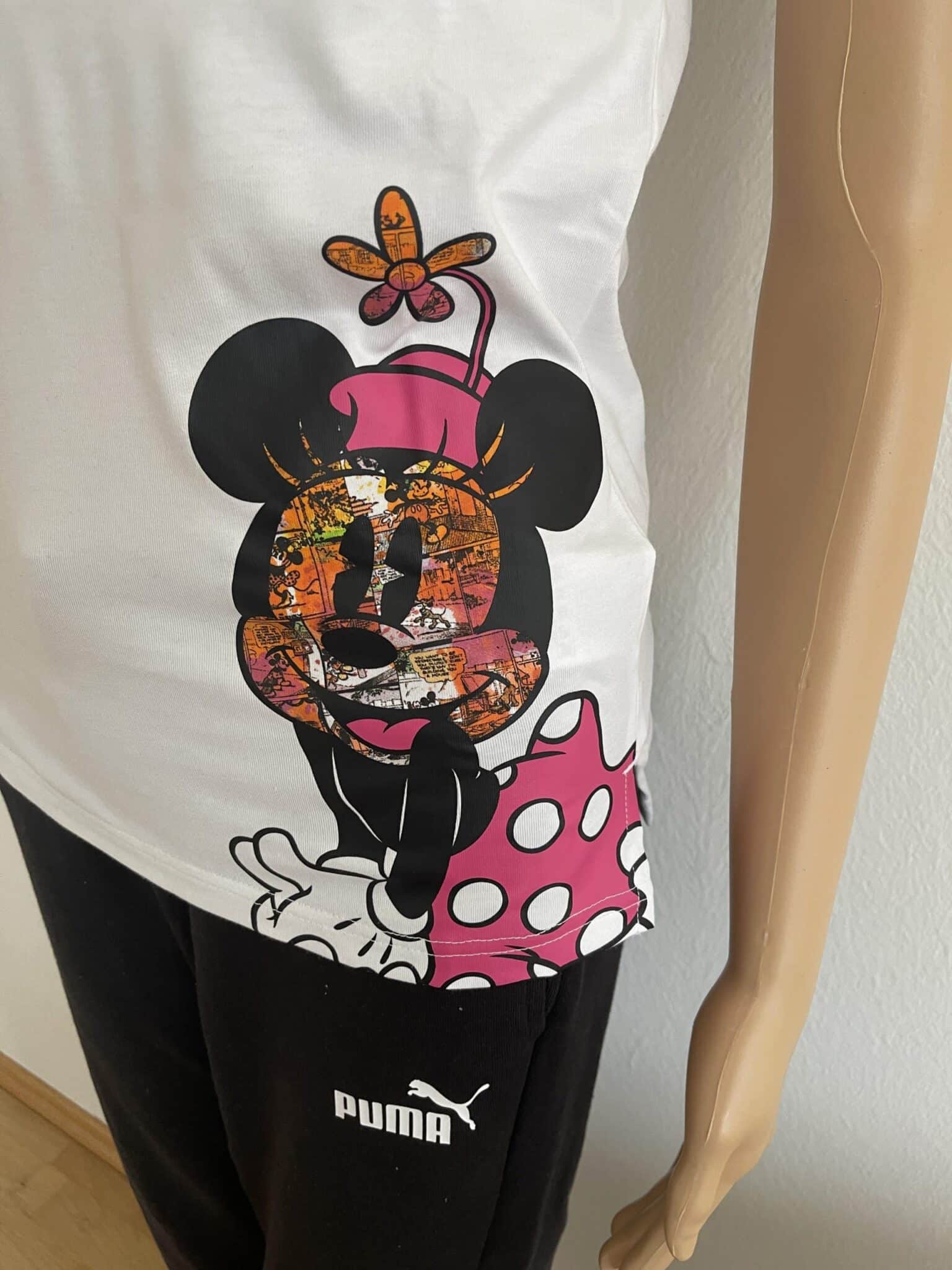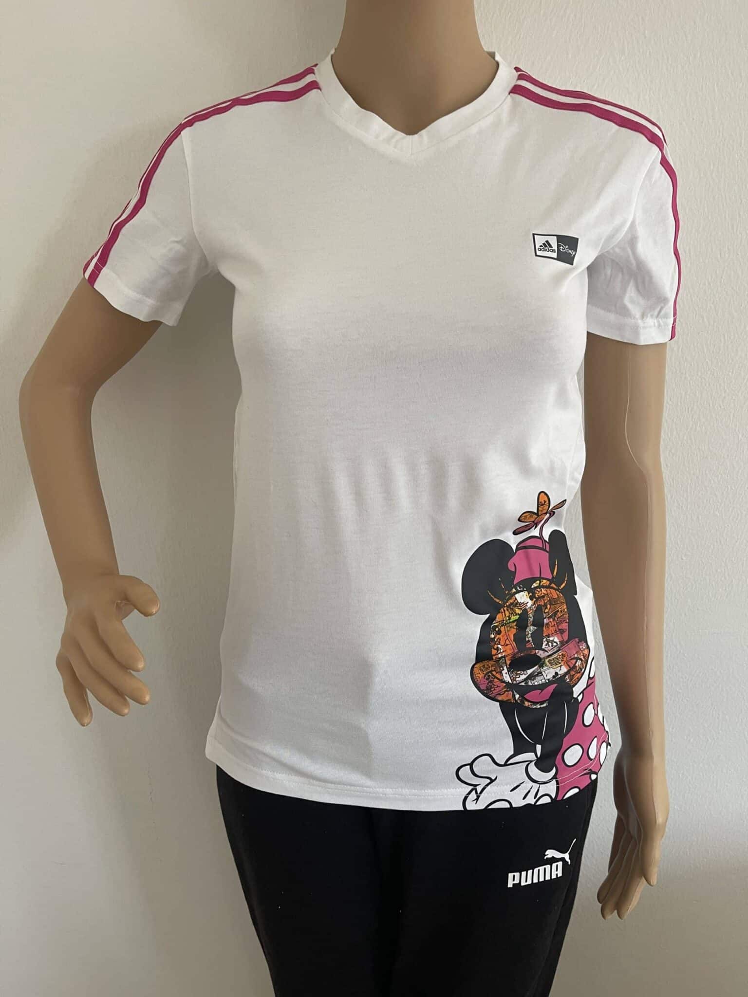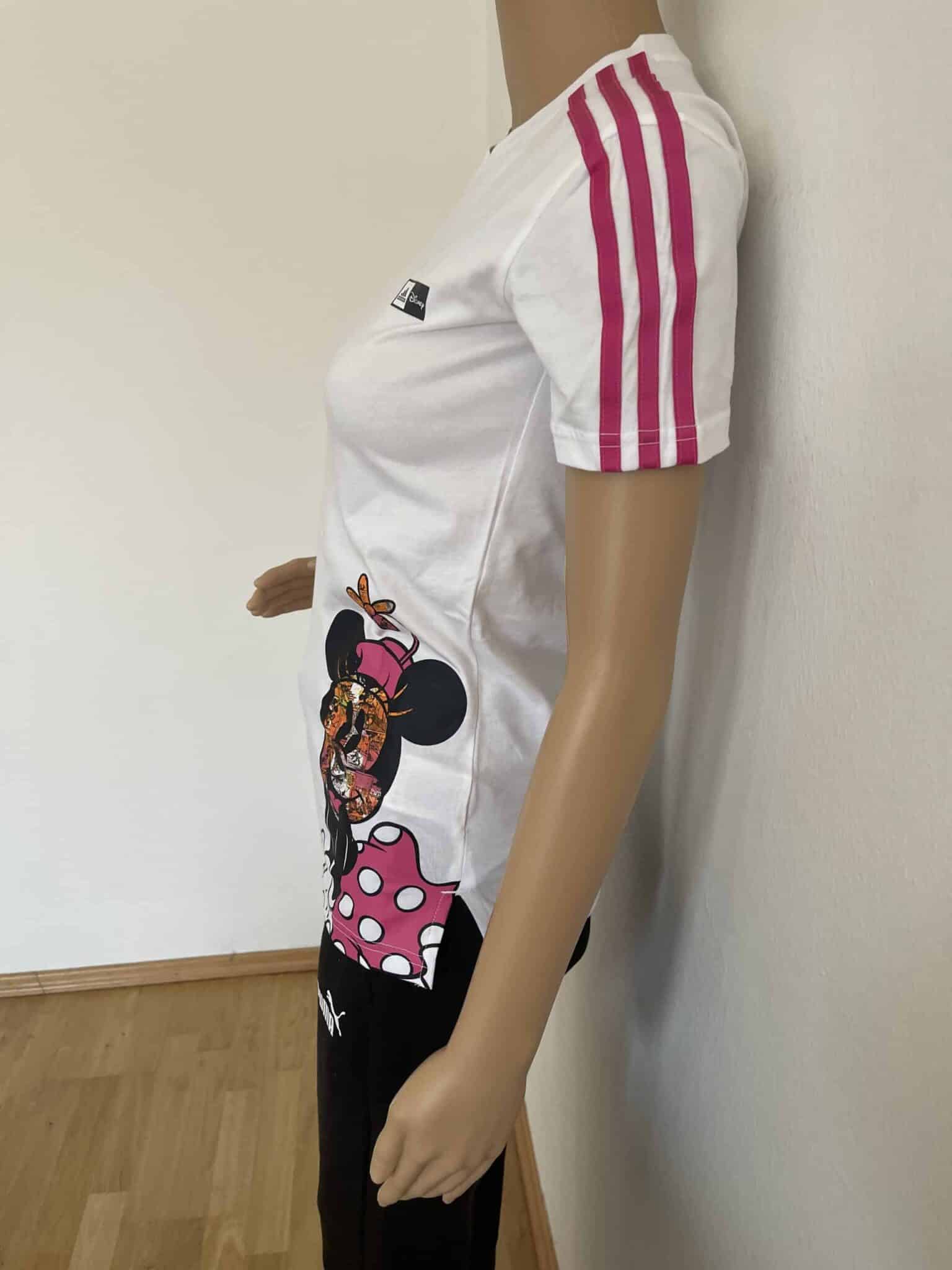 Die unverwechselbaren 3 Streifen und das Markenlogo machen es unverwechselbar und der große Minnie Mouse Druck zeigt die Mitarbeit von Disney unverkennbar an.