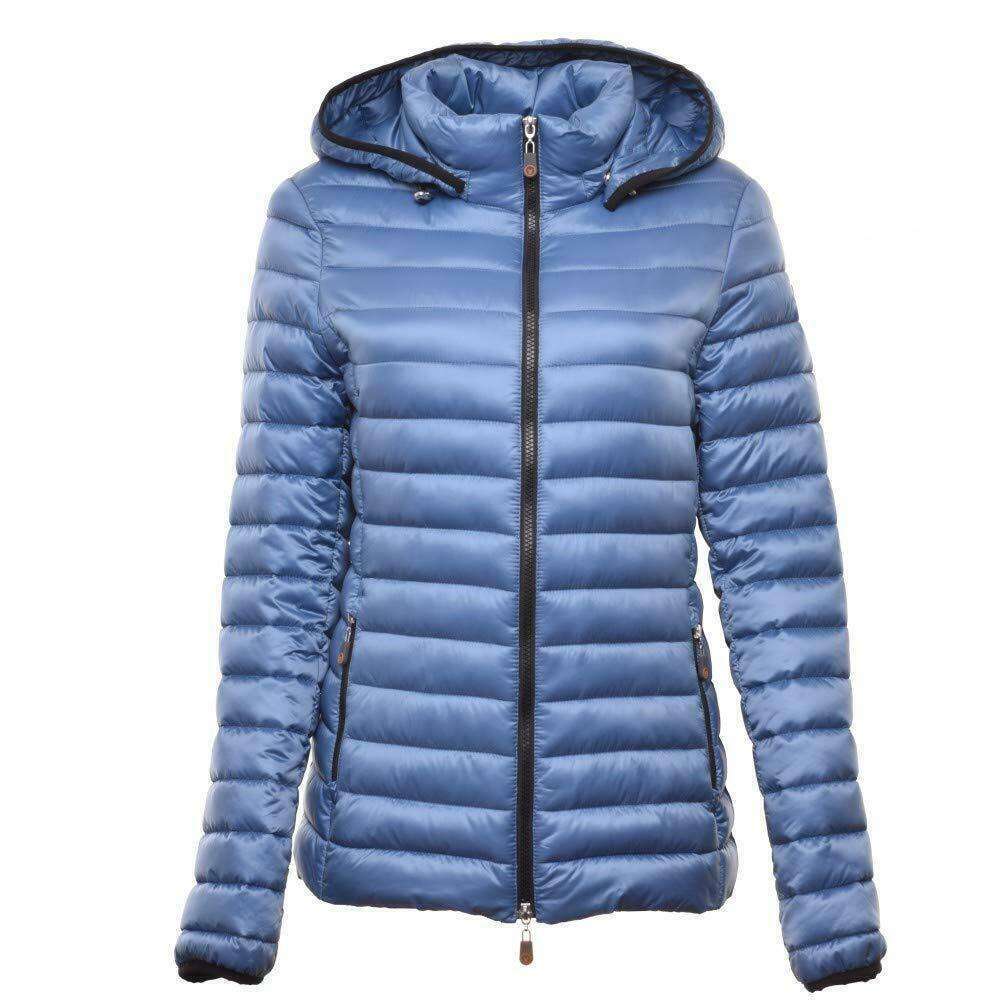 Giacca leggera trapuntata da donna, con cappuccio, in blu, taglia 36