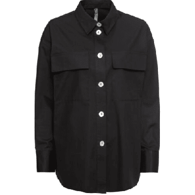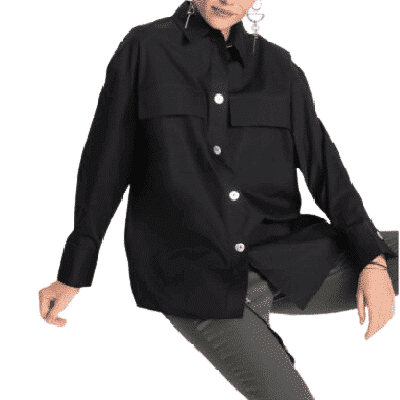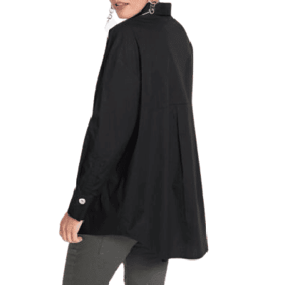 Mit ihrem spitzen Hemdkragen, großen perlmuttbesetzten Knöpfen und breiten Manschetten ist diese coole Longbluse mit Taschen das It-Piece der Saison. Die weit geschnittene Bluse begeistert mit auffallenden, aufgesetzten Brusttaschen und einem hochgeschlossenen Schnitt. Ihr Saum ist leicht abgerundet; die Manschetten werden mit einem Knopf verschlossen. Am besten passt diese originelle Bluse zu angesagten Skinny-Hosen.