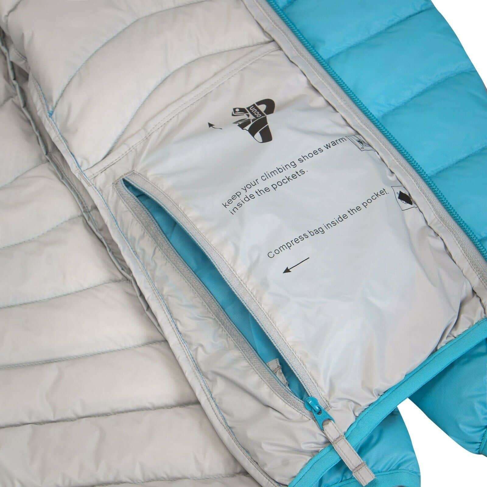 Le tasche interne sul davanti tengono le scarpe da arrampicata al sicuro e a portata di mano, mentre le due tasche anteriori sono ideali per gli oggetti di valore. Il piumino è tagliato più lungo sul retro in modo da tenere sempre coperta la parte bassa della schiena durante l'arrampicata. La pratica zip a due vie sul davanti consente un rapido accesso all'imbracatura da arrampicata e gli occhielli per i pollici mantengono le maniche sempre nella giusta posizione.