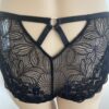 Der Slip von Petite Fleur besteht aus wunderschöner, leicht transparenter Spitze in floraler Optik. Der sexy Look bekommt er durch eine kleine Zierschleife vorne und einem Metallring in der hinteren Mitte in welchem die Bänder zusammen gehalten werden.