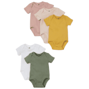 5er-Pack Baby-Bodys, Bio-Baumwolle, Kurzarm, Einfarbig, versch. Farben, Größe 56