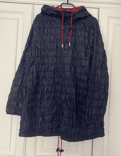 Lange Jacke mit leichter Wattierung. Umhüllende Kapuze mit kinnhoher Öffnung mit Reißverschluss zum Schutz vor Wind. Praktische schräge Taschen vorne. Raffbare Ärmelbündchen mit elastischem Tunnelzug, der am Ärmelauslass für einen hübschen, ausgestellten Effekt sorgt. Sportlich und gleichzeitig feminin. Perfekt für die Übergangszeit.