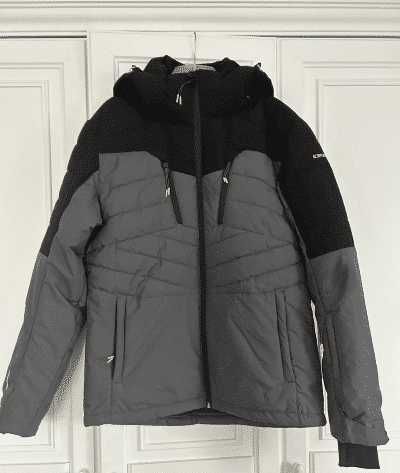 Die Jacke ist warm gefüttert und verfügt über einen Schneefang mit rutschhemmender Silikongummierung.