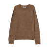 Zacht gebreide trui met wolinhoud. De trui heeft een ronde hals, lange mouwen en geribde boorden bij de hals, mouwen en zoom.