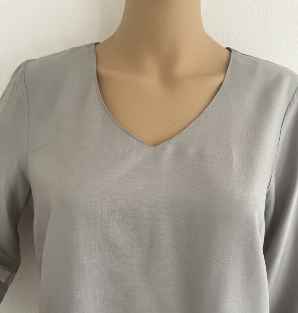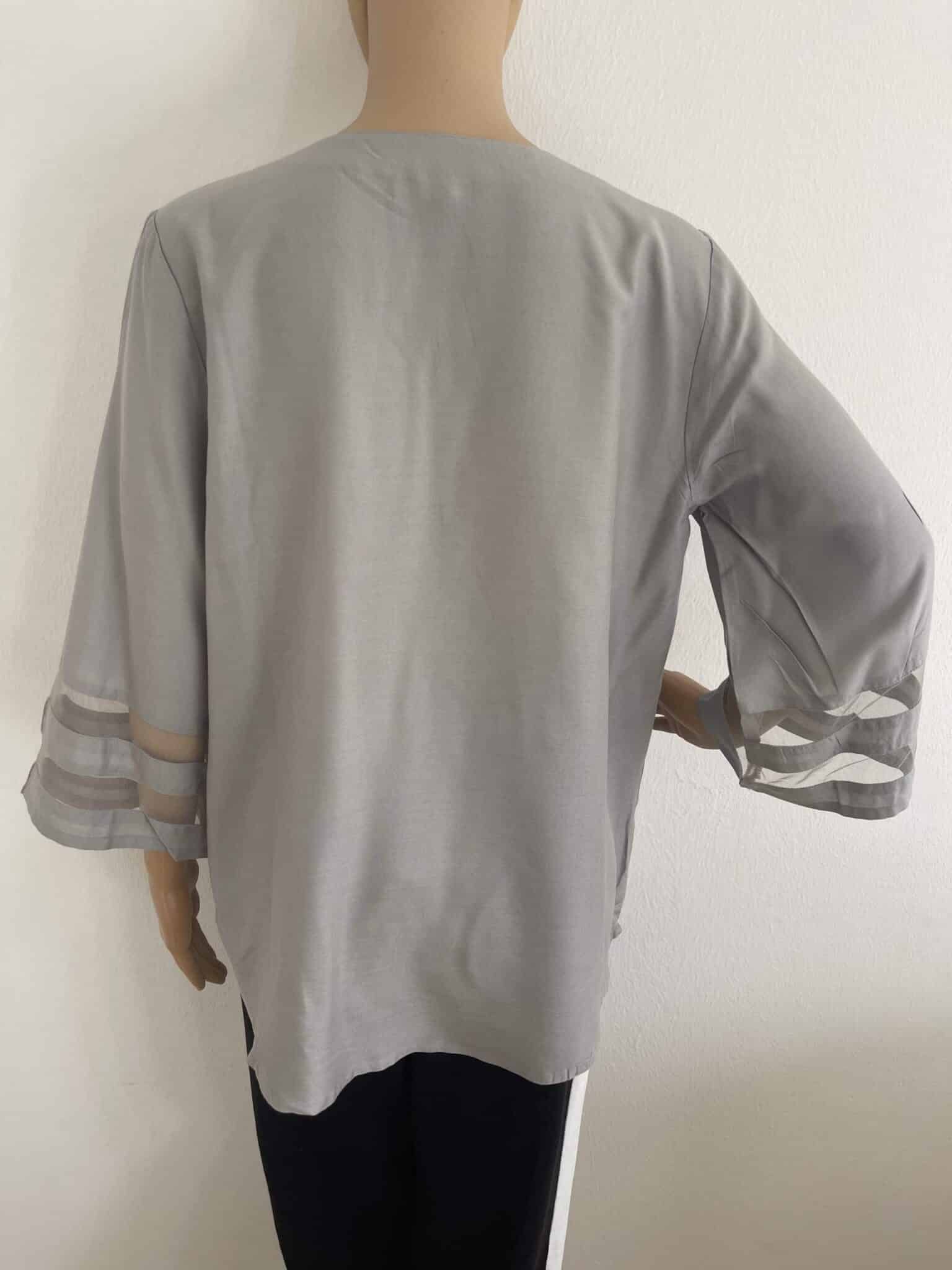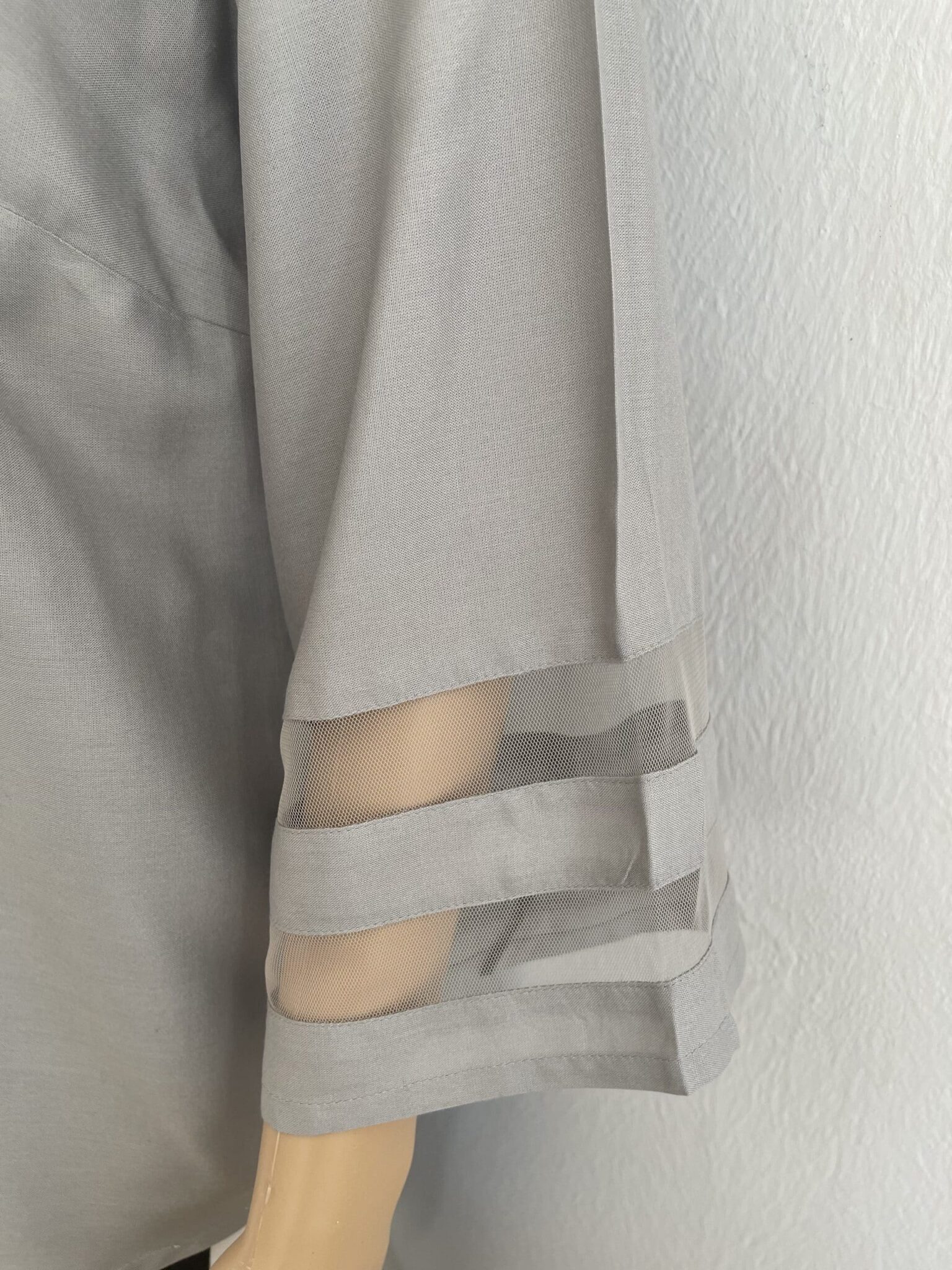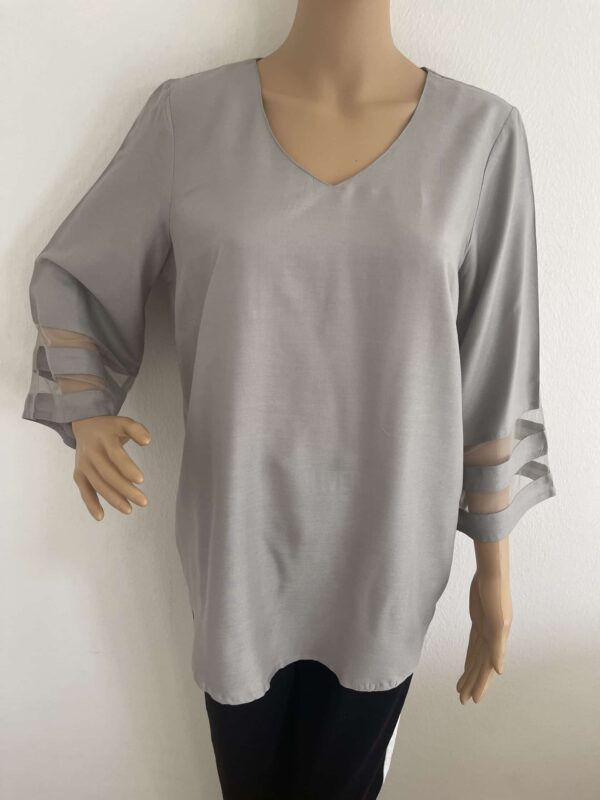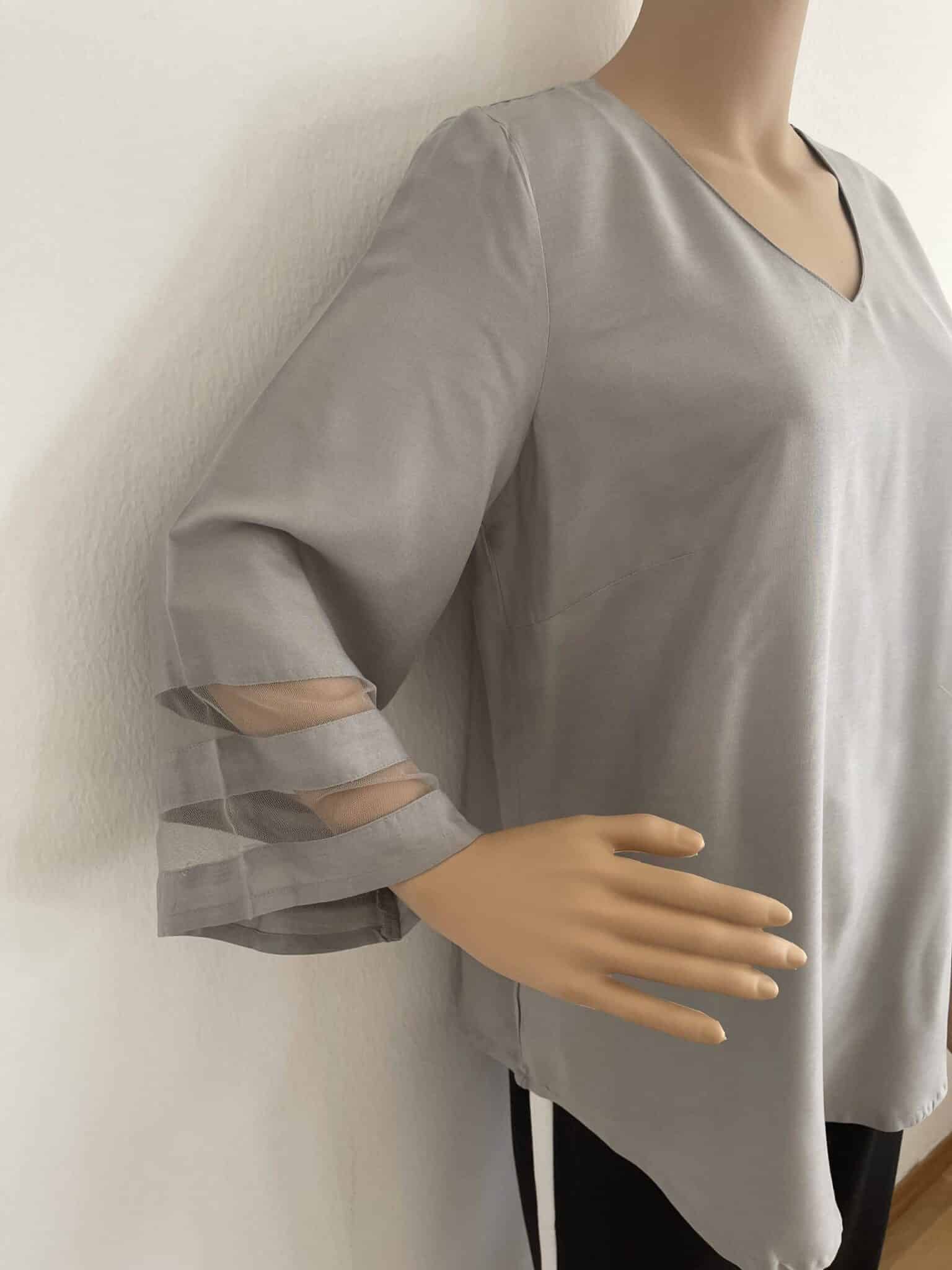 Speciale aandacht wordt getrokken door de interessant vormgegeven 3/4-mouwen dankzij het vakkundig verwerkte nylon inzetstuk.