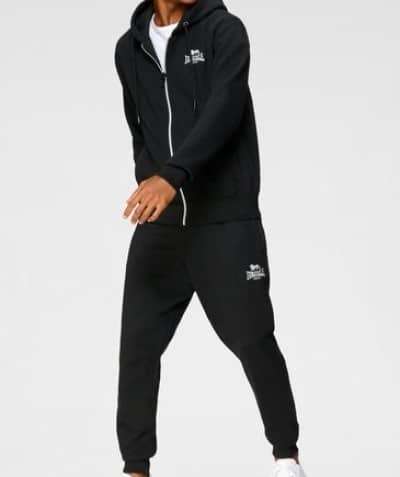 Die Markenstickerei auf Jacke und Hose machen das Besondere an diesem schönen 2-teiligen Jogginganzug von Lonsdale aus.